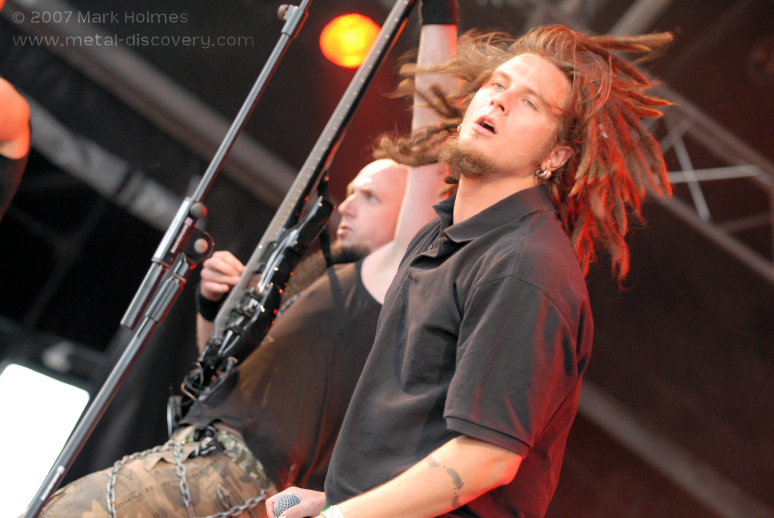 This year, the main stage and PA are discernibly larger with significantly improved lighting including around 3 times the number of moving heads than in 2006. Apart from sporadically bad mixes during a few bands' sets (which would almost certainly be misjudgements of their individual sound engineers), the PA generally sounds refreshingly clear and intensely resonant. A few technical glitches and general problems aside (including the PA rigging having to be rebuilt after it was officially condemned by John Tickle's brother (!!) and the organisers being served with a noise abatement order during Friday), BOA 2007 runs smoothly over the weekend, with few changes to the pre-published band times (albeit there's a delayed start on the first day, and an unnecessarily overlong Testament soundcheck resulting in a late finish on Thursday).