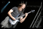 With the first half of Sunday's lineup largely favouring bands of a distinct retro essence and lighter, more traditional metal sound, sixth on the main stage, French-Canadian death metallers and 'northern hyperblast' masters, Kataklysm were set to give Bloodstock's final day a huge kick up the arse. Judging by the spontaneous crowd antics a few minutes before they appear on stage, it is evident that particular audience members are geeing themselves up with excitement in eager anticipation of something much heavier - punters separate to leave clear a large circular area which provides enough space for piggy back fights, mud wrestling, and several failed attempts at a human pyramid! In fact, the rest of the crowd seem so pre-occupied with watching this spectacle, the unbelievably intense sound of Max Duhamel's kit being soundchecked seems to pass people by. By far the best drum sound through the PA of the entire weekend, it fortunately lasts throughout Kataklysm's forty minute set as they plough their way through material new and old such as 'The Chains of Power' from latest studio effort 'Prevail', and 'In Shadows and Dust' from 2002's 'Shadows & Dust' album. The Canadian four-piece are an intense live experience with Duhamel's inhumanly fast bursts of blast-beats and generally skilled drumming providing a solid backbone for the downtuned guitar and bass of Jean-François Dagenais and Stéphane Barbe. And then there's frontman Maurizio Iacono's gutturally growled delivery which grates along in fierce unison with the sonic vehemence that explodes through the PA speakers. Full credit to the sound engineer, who I'm guessing must be the band's own. The expected large and violent pits erupt in the middle of the crowd as Iacono tries to incite even more audience ferocity by branding the crowd "a bunch of pussies" at one point for not being lively enough. Katakylsm are Sunday's wake up call for a tiring audience on this final day of the festival. An astoundingly good, flawless performance.