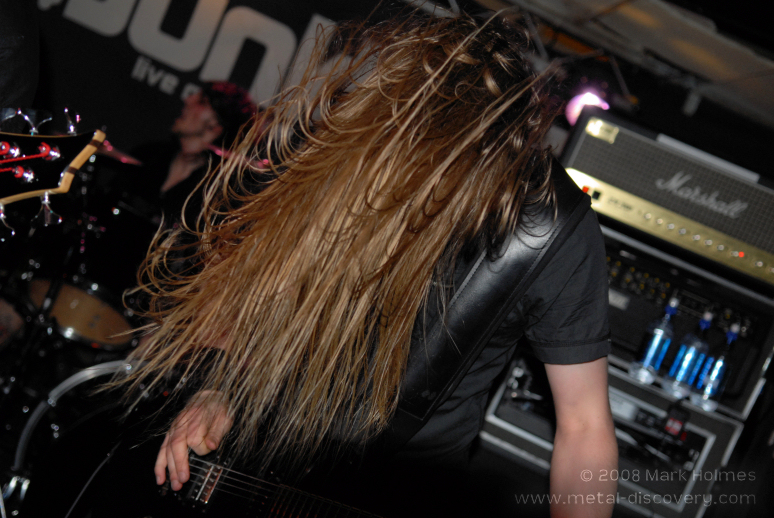 Originally formed in the early 80s, and splitting in 1991, legendary Bay Area thrashers Death Angel reformed in 2001 to perform live at a cancer benefit show for Testament frontman Chuck Billy, and overwhelmed with the enthusiastic response they received, have remained active ever since including the release of 2 new albums. Currently on a European tour to promote latest release 'Killing Season', tonight is Nottingham's turn to witness this classic thrash act in a small venue and, just before the band are due on stage, Junktion7 nearly fills up to its small 200 capacity. However, post-soundcheck, there is an inexplicable wait of around 25 minutes before they actually appear which only serves to increase the air of anticipation amongst the already excitable crowd of predominantly older metallers. And when the Bay Area legends do eventually walk out onto the stage and start to play, the audience's excitement explodes into a vigorous display of pit madness, which is sustained throughout Death Angel's entire set, including a large number of crowd surfers. Observing the fans' enthusiasm, I have the overwhelming impression that a significant number of them are reliving their long-gone thrashing youth, which frontman Mark Osegueda implicitly makes reference to, stating "good to see your missus' let you all out tonight...or maybe you've brought her with you!". Working their way through a set of 'classics' including 'Evil Priest', 'Voracious Souls' and 'Seemingly Endless Time', they also play new material including 'Lord of Hate', 'When Worlds Collide', and 'Soulless'. Based on tonight's performance, they remain energetic live performers in 2008, and swinging his dreads around during instrumental passages, it's almost inevitable that Osegueda gets a couple stuck in the low ceiling, which he amusingly fails to notice for a couple of minutes, until he tries to headbang again, then has to release his hair! Playing for an hour and a quarter, Death Angel exit the stage just after midnight to huge cheers from a clearly satisfied crowd. An excellent performance although, for me, the night belongs to Mercenary.