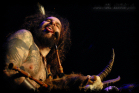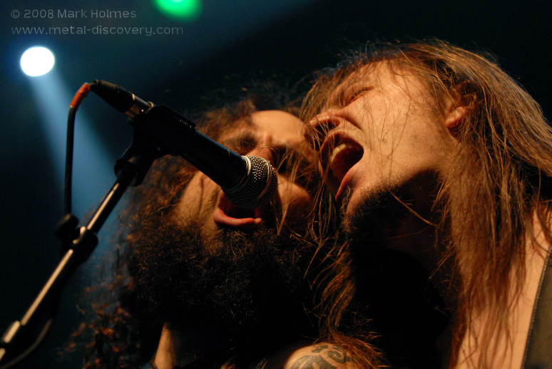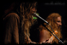Up next are Swiss eight-piece Eluveitie. I'd only heard a few tracks by the band before today, and while impressed by the death-folk fusion inherent in their compositions, nothing had quite prepared me for the intensity and raw energy of their live performance. Although Eluveitie are fairly original in their overall sound, they do, at times, remind me of a cross between In Extremo and the early Gothenburg melo-death of In Flames and Dark Tranquillity. A couple of minutes into their set, and it is evident from crowd reactions that the band have the audience within their folk-death grasp as a huge pit erupts in the middle of a now very busy Koko. One of the liveliest bands I've seen for while, I momentarily believe to be seeing double with brothers Rafi and Sevan Kirder, distinguished only by disparate tattoos, and of course the former playing bass, and the latter a variety of instruments including a Galician Bagpipe (or 'gaita galega') adorned with a goat's skull. Frontman Chrigel Glanzmann, bearing a vague physical resemblance to iconic metal nutter Devin Townsend, is interesting to watch as he delivers growled death vocals with effective ferocity, contrastingly interposed with a more laid-back demeanor when he stands behind the microphone to play a tin whistle. And special mention must also go to Anna Murphy - the sight of her headbanging energetically while playing a hurdy gurdy is captivating to behold and an alluring vision! Overall, Eluveitie, comparable in their carnivalesque performance to Finnish nutters Turisas, are an incredibly entertaining live act, and are a band that I shall now be eagerly anticipating at Bloodstock Open Air later this year. And full credit to the sound engineer too, whether it be the band's own I am unsure, though to mix so many disparate instruments and lead/backing vocals into such a pleasingly coherent whole is a major accomplishment in itself!
