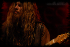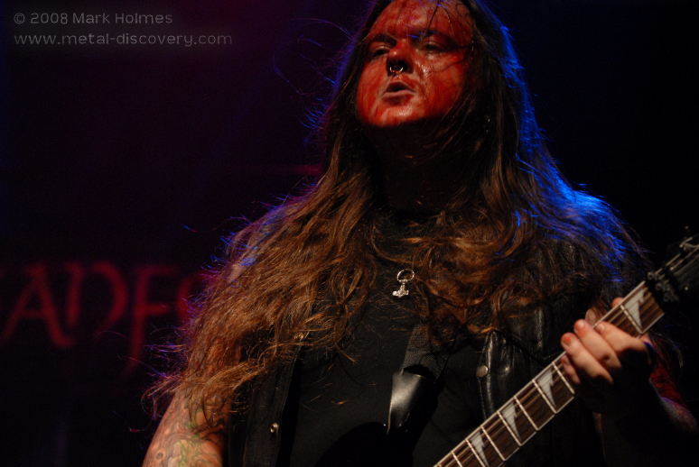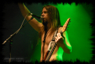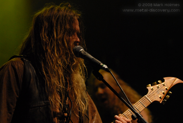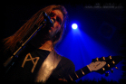 With impressively quick change over times between bands, it is unfortunate that Ensiferum delay proceedings for the first time today. It is also unfortunate that with such a long wait for the band to appear after Korpiklaani finish their set they experience drastic sound problems when they eventually begin to play. Guitars are not audible through the PA for the first 3 songs, prompting ubiquitous chanting from the crowd of "turn it up, turn it up..." (which most certainly is audible!). From my position in the photopit - ie. effectively in front of the PA speakers, this lack in the band's sound is not as noticeable, as I can clearly hear guitars from the onstage amps/speaker cabs although, judging by the vociferous protests from most of the audience, this is evidently not heard throughout the venue. Frontman Petri Lindroos, seemingly ignoring the crowd's chants at first, eventually acknowledges the sound deficiency, and temporarily disappears from the stage, and can be seen having a brief discussion with a couple of guys, then returns to inform punters that he's requested the sound engineer sorts it out, which prompts huge cheers. However, the sound is still far from perfect, and although louder with the guitars now audible, Ensiferum receive a very muddy mix, the worst for any band today, which abates the overall effectiveness of the material. This is a shame, as having seen the Finns live before, I know they are capable of so much more. Having said that, the audience don't let extant sound problems dampen their enjoyment and perpetuate huge, intense pits in the middle of the Koko as Ensiferum work their way through a set of crowd pleasers including 'Guardians of Fate', 'Lai Lai Hei', and 'Victory Song'. As much as I like Ensiferum, I remember being more impressed with Lindroos' other band, Norther, during their main support slot for Turisas in Peterborough last month. Ensiferum are still entertaining tonight, though sound problems combined with following the exhaustive entertainment of Korpiklaani's live show, perhaps work against them tonight.