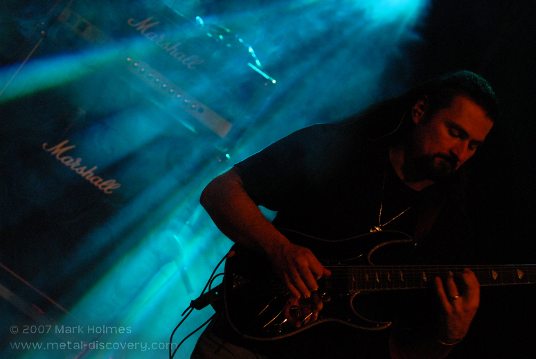 Penultimate band of ProgPower 2007 is Sieges Even from Germany. First appearing on the scene in the late 80s, the band quote a disparate range of influences in their music, including jazz fusion guitarist Allan Holdsworth; the late bass virtuoso Jaco Pastorius; 70s prog-rock acts such as Yes and Kansas; metal giants Maiden, Metallica and Pantera; and even the likes of Madonna! Playing what's best described as prog-rock with occasional metal leanings, all of their influences are audible in the music they play to varying degrees. Appearing on stage a short while after 8pm, their set of just over an hour engenders positive crowd responses as most people in the Sjiwa appear to lap up Sieges Even's musical offerings, contrary to the Clive Barker inspired 'Hellraiser' tattoo on frontman Arno Menses' left forearm - "So eager to play, so reluctant to admit it"! Although the band deliver a musically tight and generally impressive performance with an excellent sound through the PA, I find guitarist Markus Steffen's lead sound occasionally weak and lacking in depth of tone. That said, the German progsters are otherwise flawless in every other respect, and clearly a popular choice in the festival lineup with the ProgPower audience.