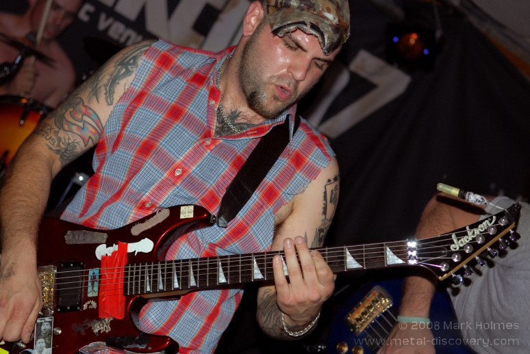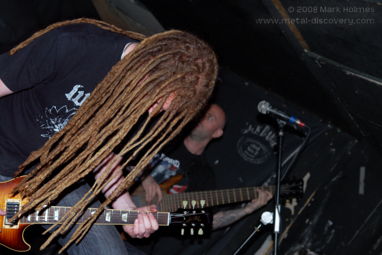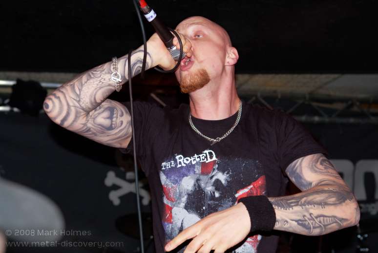 Deciding to change their name from Gorerotted to The Rotted after many years in existence as the former, citing reasons such as different musical directions with their latest material, and no longer wanting to feel 'constricted' by the gore-death subgenre's associated idioms, was news that received mixed reactions when announced by the band in April this year. Perhaps overshadowing this announcement, at least in terms of unlikeliness, was the news a few weeks later that one of the tracks from their stunning new album had inexplicably found its way onto Topshop/Topman's instore playlist alongside songs by far more commercial artists such as Supergrass, Elvis Costello and Kate Bush! Surreal or not, the widespread media attention surrounding this has been good publicity for the band at a time when both their music and identity is in a transitional stage, and helps spread the word about this 'new' band The Rotted. And that is the way they want to be regarded - as a new band, making a fresh start in the business. Obviously they already have a loyal, extant fan base from their days as Gorerotted, though their touring set only contains brief musical nods towards their former guise with older tracks such as 'Nervous Gibbering Wreck' from 2005's 'A New Dawn For The Dead'. The main focus tonight is on new material from recently released Metal Blade album 'Get Dead or Die Trying', and the tracks sound as heavily effective live as they do recorded. In fact, the majority of songs from the CD receive an airing including 'Kissing You With My Fists'; 'A Return To Insolence'; 'Fear And Loathing In Old London Town'; 'Nothin' But A Nosebleed', and 'The Howling' with its outro a pastiche of Pantera's 'Fucking Hostile'. Playing to a slightly bigger audience than Ted Maul, a large number of punters stand at the front to engage in some good old fashioned headbanging, while pit madness ensues behind them. Reciprocating with such positive crowd reactions, The Rotted deliver on every level, and the addition of ex-Cradle Of Filth guitarist Gian Pyres to their lineup has brought another dimension to both their sound and performance. It is too early to judge whether the impact of the name change will carry with it positive or negative repercussions for their career, although based on this evening's performance, and the strength of the new material, the Londoners deserve nothing but greater success within the scene (and peripheral to the scene if their music continues to infiltrate mainstream, trendy clothes stores!).