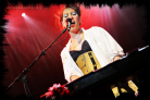 And so onto the real reason everyone is gathered in the Koko tonight; the venue's near capacity crowd eagerly anticipating the appearance of Amanda Fucking Palmer. Well, I'm sure a lot of fans were actually looking forward to witnessing the mock conjoined twin sister sensation that is Evelyn Evelyn in action but, with Jason Webley en route to these shores as Amanda takes to the stage, fans with tickets for one of the Bush Hall shows over the next three days would have to wait a little longer, and everyone else has maybe missed their chance. That said, judging by the deafening screams and cheers that greet Amanda as she appears and hurls flowers out into the sea of heads, not one person present seems even an inkling disappointed, promised as they are with a unique chance on this tour to see her perform a long, semi-impromptu solo set. A lesser artist would have undoubtedly cancelled or postponed a show under such circumstances. Not Amanda. Not in any small way. Quite the contrary, she finds quality support acts at shorter than short notice, a temporary crew, borrowed gear etc, most of which was made possible through the power of Twitter and the generosity of her fans. Right then, so Twitter does have a purpose beyond public conversations in the form of 140-character exchanges of dialogue in the binary world.