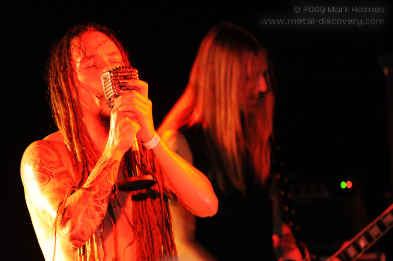 It is perhaps no surprise that tonight's show is sold out. After nineteen years in existence, it's rather astonishing that this is Amorphis' first live appearance on these shores, and with it being the sole UK date on their European tour, people have seemingly travelled from far and wide for this rare opportunity to catch the Finns in action. With a rather hot and sweaty Underworld rammed to the brim, when Amorphis appear onstage just before 8:30pm they are greeted with deafening cheers and rapturous applause from an eager audience, many of whom, including myself, are witnessing these ever popular metallers for the first time. Blessed with a near perfect sound and mix through the PA from the off, and one that is sustained throughout their hour and a quarter set, Amorphis commence with 'Silver Bride' and then 'Sampo', both from latest album 'Skyforger'. Frontman Tomi Joutsen, with the band since 2005 after the departure of Pasi Koskinen a year previously, then declares "we are finally here in London" which receives the expected cheers of approval from an enthusiastic audience as the band look genuinely chuffed by the warm response they receive. There is an air of sincere metal gregariousness around the venue this evening as everyone present seems to revel in what is, in essence, a special occasion. It's also pleasing to see such a pumped up crowd be so respectful in their enthusiasm as there are no stupidly violent pits that plague so many other gigs in this country. 'Towards and Against' is up next, obviously a crowd pleaser, although I am reminded of Amorphis' occasional musical plagiarism with its opening melody ever so reminiscent of The Gathering's 'On Most Surfaces'. The next hour is filled with an array of fan favourites drawn from their extensive back catalogue as the first bar of each number played is embraced by most present with loud cries of adoration. With most of the Finns' albums represented in the set, it is gratifying to hear the older material that is aired such as 'Sign from the North Side', 'Black Winter Day' and 'The Castaway'. Wrapping up the night with an extended version of 'My Kantele', with the time at only 9:45pm, I can't recall a London gig finishing so early - I'm guessing either to make way for a club night at the Underworld, or an unusually strict curfew. Whatever the case, Amorphis' first live appearance in the UK was quite simply sheer musical brilliance from start to finish. One can only hope they return here soon. Bloodstock perhaps?