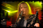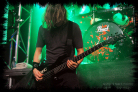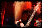With an impressively quick fifteen minute change over time, it seems in only a blink of an eye that Cannibal Corpse are onstage bombarding the audience's senses with their unrelenting heavy death metal discharge. With minimalist lighting, which proves difficult for photography although apposite for the 'mood', the Floridian extreme music maestros work their way through a forty five minute set of both classics and material from stunning new release 'Evisceration Plague'. 'I Cum Blood', 'Fucked with a Knife' and, of course, 'Hammer Smashed Face' sound as crushingly heavy played live in 2009 as they did in their original conception, while the new album's title track and 'Priests of Sodom' prove that the Cannibal ones are still capable of writing/performing effectively heavy music and remain a dominant force within the extreme music scene. It is difficult to believe that the American deathsters formed just over twenty years ago, although refreshing to see that they still appear as passionate and enthusiastic on stage as in their early days. There is certainly no "going through the motions" here as they energetically headbang through the entire set, with the crowd reciprocating in a display of mosh pit pandemonium (which perhaps peaks in its ferocity with the ever popular 'Hammer Smashed Face'). George 'Corpsegrinder' Fisher is a formidable frontman, standing tall centre stage and growling every debauched lyric in his inimitable style; Alex Webster plays his bass at extraordinarily fast speeds (a death metal virtuoso?); drummer Paul Mazurkiewicz has lost none of his 'bite' over the years and performs with great precision; while guitarists Rob Barrett and Pat O'Brien demonstrate their skilful fretboard widdlings with a barrage of heavy riffs and lead flourishes. Collectively, the quintet treat the audience to a masterful display of death metal as it should be played - succinct, hard-hitting and brutally heavy. Let's hope another twenty years lie ahead for one of extreme metal's pioneering bands. Excuse the paradox, but long live the Corpse!