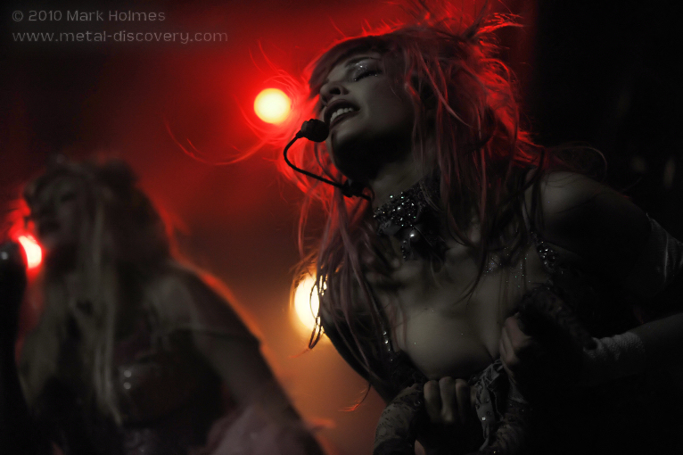 The four ladies deliver a performance through impressively tight choreography and a script coloured with moments of improv that is tailored to the show's location with sporadic Robin Hood/Maid Marian references, such as when Veronica proclaims "these barricades right here are to protect you from me and not the other way round....I'm really looking to kiss some girls...I can be Robin Hood and I'm looking for a fucking Maid Marian!" She then climbs from the stage into the photopit to, as promised, kiss a few girls who are right up against the security barrier. Even when occasional glitches occur with fluffed lines, Emilie saves the moment through her natural charisma, at one point burying her head in Veronica's cleavage before declaring "I feel safe in here", and then stating they'll get into their "Victorian time machine" to go back ninety seconds and back on script. Despite the seriousness of The Asylum and everything that concept represents from Emilie's life, the show also contains a humorous and convivial dimension, scripted and otherwise - even when a rat falls, both visually and audibly, onto her harpsichord she engenders much laughter in the crowd by saying "I think I'd like you all to realise that this rat just played the harpsichord!" However, perhaps most impressive in the whole show, is Emilie's extraordinary musical talents which she exercises in abundance with her wide, powerful vocal range and alternates between playing the harpsichord and electric violin on certain songs. 'Unlaced' and 'Face The Wall' are quite simply fucking awesome. I've heard and seen other musicians flirt with this style of metalled-up violin (such as Olli Vänskä's "fuck the guitar solo" routine in a Turisas show), but Emilie proves herself a true master of her instrument. Beyond playing dexterity and technique, her aforementioned neo-classical pieces are a true expression of inner emotion and passion with a profoundly affective depth that is characteristic of genuine virtuosic ability. The importance of such an emotional and personal musical expression is perhaps alluded to when she precedes 'Face The Wall' by informing the audience "now this is what I actually do, so please be kind". I don't think there was ever any danger of the contrary and the rapturous crowd reactions after this piece are evidence enough of the ubiquitous appreciation of her phenomenal talent on display in Rock City tonight.