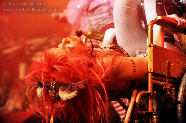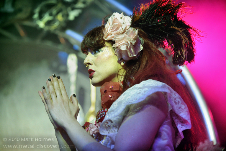 Setlist-wise, the bias is, as expected, towards the 'Opheliac' album as those present are treated to impassioned renditions of 'Liar', 'The Art of Suicide', 'Shalott', 'Dead is the New Alive', 'I Know Where You Sleep', 'God Help Me', 'I Want My Innocence Back', 'Misery Loves Company' and the poignantly ironic 'Thank God I'm Pretty' as a set closer. Prior to the latter, we have an initial encore of 'Bohemian Rhapsody', Emilie's uniquely brilliant version of course, and Freddie Mercury's one-time equivocal lyrics are given fresh meaning in the context of The Asylum concept, particularly over the a cappella intro (plus violin mimicry of Brian May's guitar solos). When the show finishes, house lights are turned on and Eric Idle's optimistic anthem 'Always Look on the Bright Side of Life' plays through the PA as Rock City's audience leave the venue with beaming grins, having experienced two and a half hours of pure carnivalesque entertainment. Despite all the scripted and choreographed elements that constitute The Asylum show, a genuine sincerity in the performance also shines through and, considering how personal the themes are to Emilie, the overall effect is that of a collective emancipatory experience....and a fuck load of fun! And I haven't even mentioned the cake throwing; tea spitting (which apparently is not actually tea in those pots); balloons and glitter explosions. The lengthy show time seems to pass by rather quickly which is always a positive sign. In short, absolutely fucking incredible! Returning to these shores in March for seven more shows, UK fans have another chance to experience the artistic insanity that is Emilie Autumn's 'The Asylum'. My advice? Get yourself the fuck along to one of these dates and free your mind...at least for the two and a half hour duration of this "mad tea party".