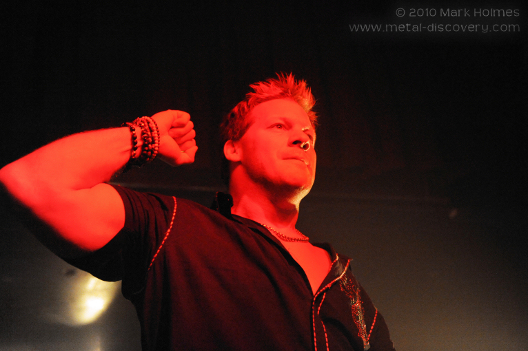 Missing the entirety of Halcyon Way due to interview commitments I arrive back in the venue just as main support band Forever Never are on their final song. As said band close their set, the atmosphere is noticeably electric in a sold out Rescue Rooms, fortunately upgraded from Rock City's basement, as sweaty bodies are tightly crammed into its small confines. No sooner have Forever Never performed their final bar of music, fans loudly chant "Fozzy...Fozzy...Fozzy" in anticipation for the evening's main attraction. A string of classic Queen songs play through the PA and it's not until the bass/snare drum intro of 'We Will Rock You' bursts forth that the lights dim, people scream louder than they have all evening, and members of Fozzy appear, culminating with the entrance of current WWE world heavyweight champion Chris Jericho. With the man's impressive wrestling credentials aside, Jericho proves himself metal band frontman extraordinaire as they launch into 'Under Blackened Skies' and he has the crowd in his grasp from the off. He prompts them to raise their hands up high, and just about every single person in the venue obliges as a sea of fists pump the muggy air. In fact, The Rescue Rooms is so oppressively hot you can actually see sprays of sweat emanating from people's heads as they swing their hair around to the infectious melodies of Fozzy's rock/metal discharge. The seriously heavy groove of opening riff from 'Martyr No More' blasts out next as all band members reciprocate with the crowd's energetic vibe and bounce around the stage with beaming grins. I can't recall the last band I saw that looked like they were enjoying themselves as much as Fozzy are evidently doing so tonight. Bassist Sean Delson even resembles the great Steve Harris at a quick glance with his manically smiling face and the poses he strikes, wielding his instrument in the direction of the crowd Harris style. In fact, I get the overriding impression that Fozzy are a band who belong, and certainly deserve to be, on a much bigger stage so perhaps such a Maiden reference is apposite. Guitarist and main songwriter Rich Ward looks like a man full of pride in being able to present the band's latest material, arguably their strongest to date, to a live audience, and redefines the phrase 'audience participation' by inviting a random crowd member onstage for the second half of the show to act as microphone holder when his stand becomes unstable. Further audience participation arrives in the form of Jericho requesting those present yell "hey, hey, hey" or "one, two, three" depending on which arm he raises during the chorus of 'God Pounds His Nails' which, quite frankly, is a mightily fine idea in having fans effectively provide backing vocals for the track, and it works a treat. One final flourish of fun arrives during the band's final two numbers as onetime Fozzy producer/guitarist, and Sabbat axeman, Andy Sneap appears onstage to jam out fantastic covers of Stuck Mojo's 'Not Promised Tomorrow' and Judas Priest's 'Freewheel Burning'. Actually, one could argue if the former is a 'cover' at all what with three current members of Stuck Mojo performing the song! In short, Fozzy prove themselves worthy of their self-assured tagline found within their website blurb - "America's most entertaining band!". For sheer, unmitigated downright rock/metal fun, it doesn't get any better than this. Suffice to say, when Jericho decides that wrestling is no longer for him, a decision I'm guessing will one day be dictated by age, then he undoubtedly has an equally successful career ahead of him as a musician. Actually, scrap that, he's already proved his worth of such based on what I've witnessed in the Rescue Rooms tonight. Fucking awesome.