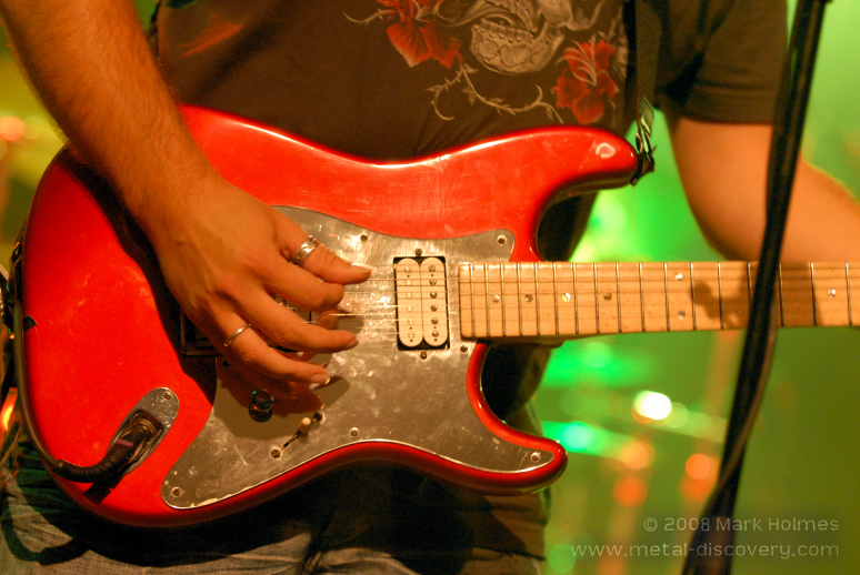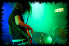Next up are Italian prog-metal act Pathosray. Formed back in 2000 under the monicker N.D.E, the band changed its name in 2002 with the release of their first demo, 'Strange Kind of Energies'. After another demo, 2006's 'Deathless Crescendo', Pathosray released their self-titled debut album the following year. With a compositional style that is largely derived from generic prog-metal, the songs are also interposed with elements of traditional metal riffing and sympho prog-rock. While I initially find the band quite engaging, perhaps aided by bassist Fabio D'Amore's highly animated performance, I tire of their music after 3 songs as it all becomes rather samey and derivative with little stylistic variations between each track. In terms of musical abilities, I cannot fault Pathosray and, judging by the positive crowd reactions, they impress those present with their competent displays of musicianship. However, for me, it's a style of music that I've heard many times before by many other bands. That said, I guess I'm in a minority in the Sjiwa this afternoon as generic prog seems to be popular with much of the audience as many nod their heads and clap along when prompted to do so by frontman Marco Sandron. A great performance, although Pathosray are not to my taste.