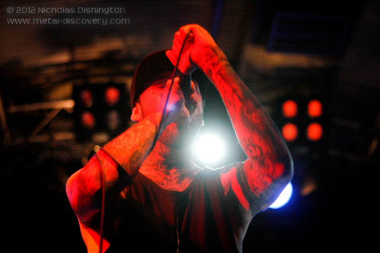 Where are Bury Tomorrow going? The fact that they seem to be constantly touring, combined with the success of their album ‘Union of Crowns’ out earlier this year, they’re showing signs of heading somewhere special. As much as I enjoyed (and continue to enjoy) their recent effort it does suffer from being a little too familiar and, in places, predictable. That said, the songs themselves are strong enough on their own merits even if they’re not really pushing boundaries. They open with ‘Lionheart’ and it’s immediately obvious that the band’s hard work is paying off, they sound incredibly tight. It sounds as good as on record but 50 times louder than you can probably get from your hi-fi. Following with another track from the latest album with ‘An Honourable Reign’ the band continue to sound on top form. Frontman Daniel Winter-Bates is a great showman tonight, goading the crowd between each song, doing stage-dives and constantly encouraging others to follow suit. I’d say The Cockpit is the perfect venue for these guys; it’s got that grungy, dirty feel that compliments their attitude and sound. I’m interested to see if they manage to get a headlining slot here one day. Moving on, we’re treated to ‘Waxed Wings’ and ‘You & I’ from their earlier EP and album respectively and while I’m not familiar with this material it does hammer home that they can be somewhat predictable; I feel like I already know these songs. Another song later and their finale comes in the form of ‘Royal Blood’, providing a soaring, almost epic, feel to the end of their set. A strong show from these lads, I really hope to see them again soon.