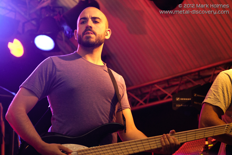 With Periphery cutting their set to just half an hour, BTBAM appear on stage earlier than scheduled and expand theirs to around the seventy five minute mark. No-one present this evening was going to feel short-changed and it's a set that seems to pass by in a flash. Such is the absorbingly varied nature of BTBAM's material as a mixed crowd from gothed-up rockers to your average metal t-shirt wearer and those attired in more casual clothes (with an unexpectedly large number of people sporting a backwards baseball cap!?) alternately stand mesmerised and mosh it up at intermittent intervals. With so many shifting time signatures, tempos, moods, and stylistic/structural divergences, there's not a moment to be bored during a BTBAM set although such musical disparity makes any kind of sustained pits an impossibility so there are only short bursts of moshing throughout the evening. However, judging by the majority of the audience and their fixed stance, many simply stand and admire the virtuosic abilities of these North Carolina musicians with a little bit of head nodding indicative of their enjoyment and appreciation.