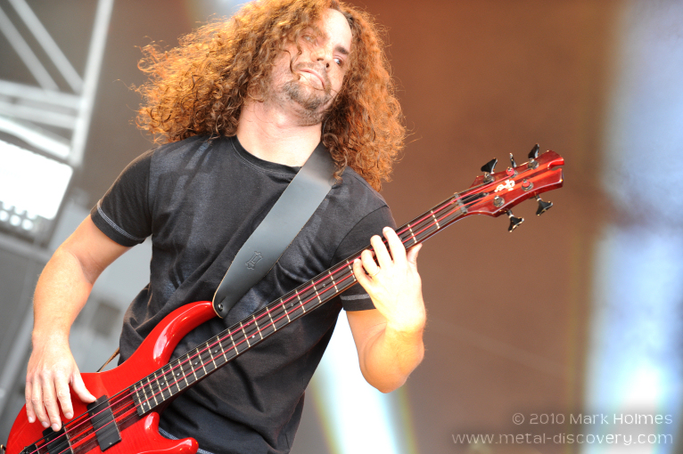 After having their debut UK appearance stalled following the cancellation of the British incarnation of ProgPower in 2008, Swedish prog-metallers Andromeda have finally made it over to these shores to open up the second day of this year's Bloodstock Open Air. As with the previous day, an early start of 10:30am does not deter a significant amount of people who have formed a sizable crowd in front of the main stage. Better still, Andromeda have been afforded a half hour slot compared to the twenty minutes permitted for each of the opening acts on Friday/Sunday, and the Swedes make the most of such an opportunity with a tight, professional and engaging display of virtuoso musicianship. On an overcast morning that threatens yet more rain for festival attendees, the heavy clouds at least engender darker conditions whereby impressive stage lighting becomes visible and provides a more dramatic backdrop against which they perform. From opener 'The Words Unspoken' to final song 'Periscope', Andromeda entertain Catton Hall's early risers with five tracks of flawless prog precision and, looking discernibly pleased to be playing at the festival, frontman David Fremberg declares mid-set - "It's excellent to come to England" which, judging from the warm reception the Swedes receive, many present are also happy they eventually got to play on British turf (albeit muddy turf from a weekend of sporadic showers thus far). Fremberg is in fine voice throughout with a powerful vocal performance while guitarist Johan Reinholdz demonstrates his fretboard skills with some stunning lead work, and bassist Fabian Gustavsson helps maintain visual interest with a multitude of amusing facial expressions to accompany his dynamic style of playing. A great performance from a talented band. Let's hope they make it back over here again soon. (MH)