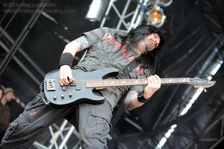 “SPITTING BLOOD IN THE FACE OF GOD!” It can only be Onslaught, prepping the fans for what lies ahead with opener ‘Killing Peace’ scything the mud-laden crowd into immediate mosh pit frenzy. The thrash titans are on full form with vocalist Sy Keeler stomping around the stage while rasping out violent poetry, matching the rabidity of original screecher Paul Mahoney on the ‘Power from Hell’ debut. The setlist essentially mirrors all the other sets the band’s played since the release of ‘Killing Peace’ in 2007. All albums are represented with the exception of blunder ‘In Search of Sanity’; ‘Let There Be Death’, ‘Metal Forces’, ‘Planting Seeds of Hate’ and ‘Burn’ are ingested superlatively by the thrash hordes. Onslaught’s thrash style is intricately unique with particularly dark and heavy riffs, more likely to be found in black thrash metal bands than the straight-forward thrashers, but of course Onslaught stay clear from the black metal sound. Summing the sound of Onslaught triumphantly is the gritty ‘Onslaught (Power from Hell)’ closer, which force-feeds the audience with muscular thrash riffage that thrashers can truly get their teeth into before the curtain falls on what is a spectacular performance. Also, during the set, Keeler states that the following day, Onslaught will be heading over to Denmark to record the new album so expect more high octane live shows in the future. (EF)