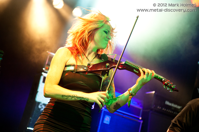 From what seemed to be originally advertised as a slot fairly high up in the Sophie tent on Sunday, Splintered Soul open up Bloodstock's second stage on the festival's second day at 11am. Adopting the tag of "Epic Cinematic Metal", which they seem to claim is something unique (despite Rhapsody/Rhapsody of Fire's creation of, and affinity with, said subgenre many years ago and other emerging bands such as Pathfinder), what Splintered Soul actually offer is a series of compositions in the symphonic prog/power mould. It's certainly not unique as it's a musical path many others have followed previously within the metal genre, but this bunch of Kent-based musicians do it ever so well. Incredibly well, in fact. Performing on a stage adorned with vertical banners that are actually "coming soon" adverts for their forthcoming album, I can't help but think it would've looked more effective if said banners displayed just their band logo. After all, the music they perform with tight precision and engaging enthusiasm is surely advert enough for what they do and an onstage verbal announcement about their new album during the set would have sufficed. Minor banner quibbles aside, Splintered Soul look and sound great. Playing to a click with orchestrations on backing tracks, at least they've included live violinist Sally Jo in their ranks to embellish the standard metal instruments. And where it seems to have become a standard amongst a plethora of female singers in metal bands where they position a portable fan on stage to blow their hair around for added spectacle, it's a little surprising to see guitarist Chris Frost with a vanity fan instead of vocalist Erica Mengod. Then again, maybe the guy's prone to feeling the heat so it's there for cooling purposes rather than a reason of vanity. Overall, a mightily fine start to the day and the enthusiastic crowd reaction Splintered Soul receive at such an early hour is testament to their professionally slick, energetic performance. (MH)