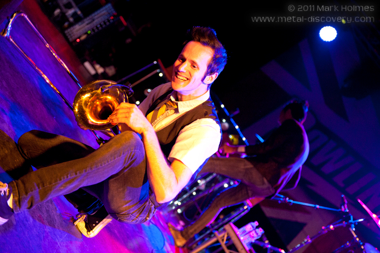Formed in 1998 under the moniker Bomb Squad, Suburban Legends assumed their present day name a year later and here they are in Lincoln as main support on the tour. Undoubtedly a new name for many present, they become the discovery of the night for a whole horde of Bowling For Soup fans judging by the audience reaction that becomes increasingly more vociferous and animated as their set progresses. With a touch of Danny Elfman's Oingo Boingo battiness, their songwriting adheres to an infectious blend of ska, rock, new wave, and pop, all delivered on the live stage with an incessant energy, tightly and, most importantly, a truly infectious fun vibe that wins you over whatever your listening proclivities might be. It certainly wins me over, anyway, and just about everyone else present in the Engine Shed this evening as the majority of the crowd bounce up and down to Suburban Legends' feel-good tunes. Frontman Vincent Walker knows how to work an audience par excellence and splitting them into two for a mid-set sing-along is always a winner. The lively brass section of Aaron Bertram on trumpet and Brian Robertson on trombone also impresses as the two men hurl their instruments high in the air, leap around at every opportunity and execute some choreographed dance moves. Brian Klemm's guitar adds a rockier/metal dimension to the overall mix at key points with distorted chords and some skilful soloing sporadically beefing up the band's sound. Suburban Legends are a rather stunning live band and will leave Lincoln, and the UK, with significantly more fans than when they arrived on these shores for this tour.