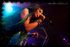 With this evening being the first show of the tour, you'd never know, as Canada's Sumo Cyco storm the stage like a well-oiled machine at 7:20pm, for a fast-paced, adrenaline-fuelled set of dancehall punk metal madness. The quartet transform Rock City into Cyco City for forty minutes, with an infectiously energetic display of groove-infused heaviness and danceable rhythms. While they receive a good crowd response from the off in the venue's half-full basement, frontwoman Skye "Sever" Sweetnam and her Cyco comrades gradually win over all present as their set of narratives from Cyco City progresses, to the point where she asks everyone to bounce up and down, to which people oblige en masse. A ceaselessly dynamic performer and strong vocalist, Sever's energy seems boundless, as she dances and thrashes her way around the stage, up against the barrier and, at one point, in the middle of the crowd. A sprightly and part-frantic cover of Red Hot Chili Peppers' 'Give It Away' heightens audience enthusiasm and an airing of 'Fighter' towards the end of their set seems to spark the most ardent response. All in all, Sumo Cyco impress greatly tonight, although it's all marred ever so slightly by a bass-biased mix through the PA, which renders the guitar barely audible at times. It's also worth mentioning that this was the debut show for the band's newly recruited sticksman, Trozzi, who gels perfectly with his band mates and drums his arse off - a fine addition to their ranks, whether he transpires to be mere touring session player, or a permanent member.