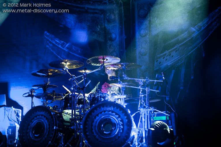 As someone who hasn’t listened to Fear Factory for some ten years, anything post-‘Digimortal’ was always going to be a bit foreign to me. Luckily, and as they mentioned on numerous occasions during the set, they were playing some new songs and playing some old songs. This not only left the half-arsed listener who was familiar with them during their more popular periods feel less alienated but also introduced us to a new era of the band. The vocals may have been patchy in places but there was a lot of love among the industrial fans for a band who helped shaped the genre in the 90s. The hardcore fans helped lift the mood during the more “obscure” moments, with certain crowd members singing every song word for word throughout, but during songs such as ‘Linchpin’ (which has now been ruined for me forever by someone, who shall remain nameless, whispering to me that it sounds like Burton’s singing “Dad, give me your porn”. Thanks…. Thanks) and ‘What Will I Become?’ the whole crowd rallied together and, literally, made the floor jump due to some less than sturdy floor boards. Some of the patchier moments can be somewhat forgiven given the length of the run they’ve been on this tour and it didn’t seem to bother any of the fans present at the HMV Ritz and, let’s face it, the songs are strong enough on their own merits for the small details to be overlooked which is surely what really counts. They managed to do it without taking themselves 100% seriously as well - Dino might have got stick for being, how should I put it… a “larger” gentleman, but it was all done in good spirit. It’s enough to have given me some inspiration to not leave it another ten years before I listen to them again and to make the teenage version of me pretty happy at the same time. There were no gimmicks here; it’s just pure, stripped back industrial metal and they could safely save all the faff for what was to come next… (SW)