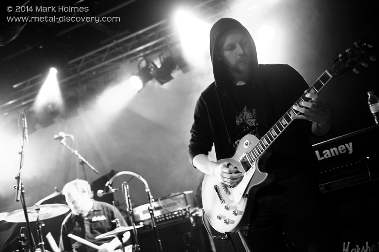 Releasing their new album at the end of April this year, the melodically sublime masterpiece that is 'The Dead City Blueprint', Thine's return surprised many. Why? Well, twelve years since their last release is one hell of a gap between records so it was a fair presumption the band had ceased to be. Not so, and what an emphatically majestic return it was, such is the strength of their new material. The announcement of their addition the bill of Devin Townsend's two pre-Sonisphere warm-up shows was a most welcome one, particularly as I was curious just how their new songs would translate in a live context. The short answer is magnificently. Airing four tracks from said new release, and a couple of yore, each and every bar of music is a sonically beautiful blast of melancholy, predominantly down-tempo although punctuated with a faster, more exhilarating rock/metal dynamic, right up until up-tempo closer 'The Precipice'. A fantastic sound through the PA helps their material thrive in Rock City this evening as onlookers alternate between a mesmeric gaze during the slower, melancholic passages, while bursting into fits of more animated action during the heavier, faster parts. Just about every band member opts to perform in an almost subdued, low-key manner, including hooded guitarist Paul Groundwell (isn't it hot up there, mate, it's the summer?!), although it's down to frontman Alan Gaunt to provide the onstage energy. Leaping around the stage with boundless enthusiasm, Gaunt manages to incite much movement in Rock City's audience, undoubtedly winning over new Thine fans in the process. A musically stunning performance and a stunningly assured return.