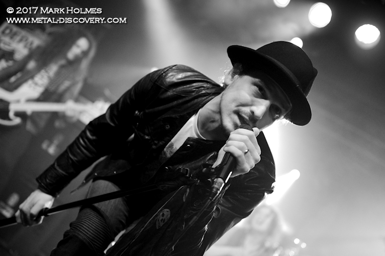 Within Sheffield Academy's 2,350 capacity main room, a venue that has the distinct odour of sweaty socks (before it fills up with punters... so the crowd are not the offenders here), sole support act Departed hit the stage at 6:45pm. Featuring ex-The Treatment guitarist Ben Brookland, they're incredibly derivative of any number of hard rock acts. These Brits exercise their chops firmly within the realm of the tried-and-tested. So, it's clichés abound throughout their 45 minute set... from the music they play, to their attire, to all the poses they strike onstage. But there's something very likeable about Departed. Their pastiche is a refined one. The songwriting's great, despite its underpinnings of retro rock regurgitation. 'Pretty Little Thing', for example, has melodic similarities to Guns N' Roses' 'Sweet Child O' Mine', before developing into what sounds like a GNR/The Cult hybrid. And they have a ton of energy.