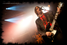 Rock City isn't even a quarter full when the Los Angeles alt-rock outfit, Venrez, hit the stage at 7pm. I have to remind myself it's a Friday night... the start of the weekend... party time... where is everyone?! Still, as they progress with their 40 minute set, more and more people do slowly amble through the doors and it's not long before bodies fill half the venue's capacity. What they're greeted with is an engaging blend of both discordant and harmonious sounds, fused into a naturally innovative whole... and a captivating one at that, where the power of their live performance becomes quite an immersive experience. Frontman Venrez visually resembles an Ian Hunter/John Cooper Clarke hybrid, and paces around the stage in his own time, which matches his quasi-drone-drenched voice that, while lacking any kind of dynamic range, actually fits the music a treat. It's his band mates who deliver the real bursts of energy, both through music and performance - particularly sticksman Ed Davis, who ramps up the intensity of songs as and when required by pummelling his kit with an innate passion. It's fair to say this guy is most definitely in the zone tonight. Guitarist Jason Womack both attacks and articulates his fretboard to convey songs' aggressive and ambient passages with equal zest, while bassist Cynthia Gillet impresses with her inventive bass-lines and commanding presence. The band, undoubtedly, have such a huge, full sound considering their minimal constitution... however, this is aided, in part, by a volume issue, where everything is cranked up far too high through the PA for the size of the venue. Passages of certain songs do lose a degree of clarity and, tonight, Venrez come across as way more crushingly heavy than they actually are. Still, I'm guessing they want to represent themselves as more about visceral energy in a live context than alt-rock lucidity. It's ironic, too, that a couple of mic'd up Marshall combos are dwarfed by Michael Schenker's full stacks, yet the band's sound engineer still sees fit to crank 'em up as much as he does through the PA. Perhaps he read Freud's 'Beyond The Pleasure Principle' some time ago, which unconsciously instilled a size complex in his psyche! Volume issues aside, Venrez impress me greatly this evening.