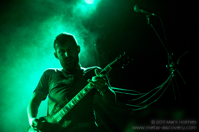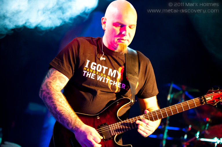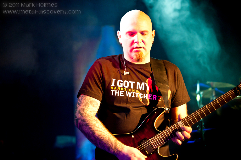 Bathed in blue backlighting and making a casual entrance onto the stage, Tides From Nebula make an unassuming start to the evening’s proceedings and to their first ever UK appearance. However, after a minute or so of guitar-derived ambient aural swelling, gradually building into the beautiful intensity of the first track from their new album ‘Earthshine’ (produced by composer par excellence, Zbigniew Preisner, who recently worked with David Gilmour on his latest album) the Polish quartet clearly have the crowd intrigued, for this is no standard prog-fare of twitchy time signatures, intelligent lyrical matter and well-sung vocals; this is purely instrumental, almost orchestrally structured, ambient guitar-led post-rock, (with a hint of psychedelia) and a perfect accompaniment to headliners, Riverside. Passionately delivered, swooping from dreamy multi-layered and looped guitar and bass melodies and gentle drumming, building into gradual crescendos of distorted, echoey power and intensity, with guitarists and bass player alike wildly flinging their instruments around and up into the air whilst still playing perfectly, it makes for one of the most awesome visual and sonic delights I have witnessed this year. Despite an abrupt and unplanned mid-set break caused by apparent power issues on stage, their set flies by in too short a time, and after airing numerous tracks from ‘Earthshine’ and previous album ‘Aura’ (including the excellent ‘The Tradegy of Joseph Merrick’) they’ve gained a well-deserved, positive crowd response. One can only hope that they return to these shores again so we can once again experience their sonic beauty. Truly spectacular. (HS)