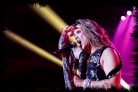 The atmosphere in the room is vibrant and sing-alongs are in abundance. ‘Fat Girl’, ‘Asian Hooker’, ‘Just Like Tiger Woods’, ‘Let Me Cum In’ and ‘If You Really Really Love Me’ sees Starr almost handing the mic over to the crowd as they sing them all word-for-word, gleefully revelling in the capacity crowd’s performance. Satchel’s ten minute guitar solo – yes, ten minutes! Never let it be said that Steel Panther aren’t extravagant – bestows upon us snippets from Iron Maiden, Black Sabbath and a host of metal greats as well as the ‘Do-Re-Mi’ song from ‘The Sound Of Music’. Such hilarity! While the band’s songs and their comedy turns are the reasons this audience is here, a large part of a Steel Panther show is down to the crowd. With many a girlfriend appearing atop their boyfriend’s shoulders to bare their boobs, only in a Wolverhampton crowd would you see a big guy pop up to do the same, his moobs drawing as much, if not more, applause as his female exhibitionist counterparts. Later in the set, one by one, these women were invited up on stage to dance with their boobs out while Steel Panther play ‘That’s What Girls Are For’. That the song is about domestic servitude with domestic violence being “humorously” referenced appears to slip by this troupe of topless temptresses. It makes you wonder how many in the crowd spit and how many swallow Steel Panther’s misogynistic mantras. And so, when Satchel drags a ten year-old kid up on stage to introduce ‘Death To All But Metal’, the crowd goes wild with delight. And even though he looks uncertain as to what he should do with them, he stays to dance on the girl-filled stage. The indoctrination has begun…