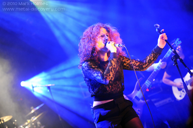 Sole support band of the evening are Dutch rock/metallers Autumn, a band I last caught live some five and a half years ago in Utrecht when they opened for Within Temptation. I recall not being overly impressed back then, and with a significantly altered lineup since, I also failed to be won over by last year's 'Altitude' album which I dismissed as a rather bland collection of rock/metal tunes that lacked any real punch. However, with all that said, I never make any definitive judgement on a band's worth until I've seen them live and Autumn, in 2010, are proof that this is a wise strategy. For tonight, in the P60, they inject each of their compositions with a dynamic, raw energy that I've previously found lacking in their recorded form and vocalist Marjan Welman, with the band since 2008, has a powerful voice on the live stage that seems not to have been captured too effectively on 'Altitude'. Opening in down-tempo, subdued fashion with the ballad-esque 'Synchro-Minds', band members slowly wander out onto a smoke filled, dimly lit stage. Offsetting the low-key start with up-tempo bombast, 'Paradise Nox' follows and Autumn transform into a full-on energetic rock band as Welman headbangs centre stage and the P60 bursts into life. With their nearly hour long setlist comprised of material from only 'Altitude' and its predecessor 'My New Time' with the likes of 'Blue Wine', 'Forget To Remember (Sunday Mornings)', 'Satellites', 'Skydancer', 'The Heart Demands' and set closer 'Altitude', only drummer Jan Grijpstra and guitarist Jens van der Valk remain in Autumn's lineup from the pre-'My New Time' era so I'm guessing it's a statement of "this is who we are now". And who they are now, based on tonight's show, is a far superior live band than they are recorded.
