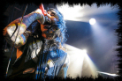 Next up this evening and following in a similar vein are Butcher Babies. A five piece, also from LA, featuring two female vocalists. They used to play topless with just tape across their nipples (Wendy O Williams stylee) but dropped this a little while back. While this would almost certainly have boosted audiences (more out of curiosity or cheap titilation than anything else) it was really only a gimmick. And completely unnecessary because this band really do kick ass! The live show is ferocious to say the least with frontwomen Heidi Shepherd and Carla Harvey both dominating the stage and keeping the audience spellbound. The music is a fine soundtrack to their dual attack. The rest of the band have their faces painted and the whole stage show is very impressive. 'There's Blood Everywhere' is introduced and with some audience participation and the closing song 'Axe Wound' sees both of the vocalists standing on top of the barrier, much to the consternation of the security! They leave the stage telling the audience to catch them on the merch stall, "meeting, greeting and definitely fucking drinking". This is not a band who are shy of performing and their short set is over long before it should be, I look forward to seeing them again soon.