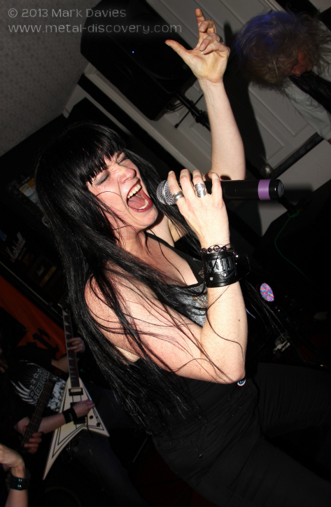 I have read and heard so much, in recent months, about what a superb venue The Gathering is and every comment has been spot on. It may be small but it serves a great selection of real ale (or coffee, if your head is already suffering ‘Mr. Davies’!) More importantly, it has fantastic hosts, a great and knowledgeable crowd and a huge and special atmosphere. First up tonight were Incassum, a completely new name to me, but thank goodness my head has been removed from my proverbial backside because all I can say is WOW! I get the feeling we are going to be hearing a lot more from this Manchester based act in the coming months. Having, already recorded an acoustic session for radio earlier in the day, they hit the ‘stage’ running with their Arch Enemy style brand of brutal metal. All very accomplished as musicians it has to be said that the star, and very definitely focal point, is vocalist Sharleen Kennedy. Stunning to look at and possessor of a voice that could, quite frankly, curdle blood. She has a vicious range and, when the music requires, can sing superbly as well. Incassum’s forty minutes seemed to flash by. Watch out for this band, they mean business!