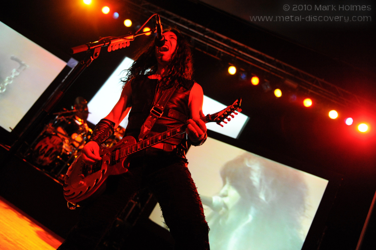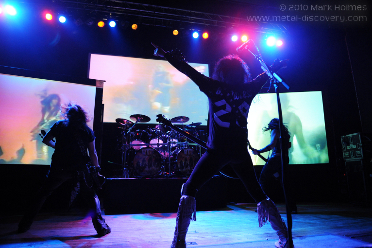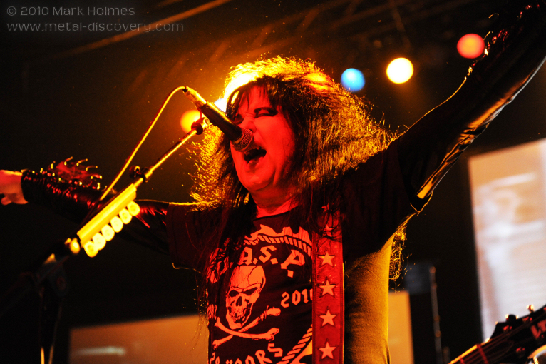 Winter bites hard in Wolverhampton as legions of W.A.S.P. fans patiently wait in the dark to get inside. The appetising band is Brazilian Shadowside, formed in 2001 and enjoying their first sojourn to England. Promotional material stresses the singer Dani Nolden but those expecting the typical female vocals associated with metal bands should be surprised. Nolden sings deeper, more masculine, almost like a teenage boy. It sounds particularly groggy live and the music itself is formulaic modern hard rock/heavy metal. The messy sound fails to improve matters. Despite Nolden’s enthusiasm and confident stage banter between songs, the audience is largely unimpressed and the bar is crowded, although there are some supporters at the front of the venue. The band performs material from both of their albums ‘Theatre of Shadows’ and ‘Dare to Dream’. They are fairly unimpressive to watch, with little of a stage presence or audience interaction. The music does not work on enough levels and feels starved of variation. Their slot length is a generous one that drags on too long. Supporting W.A.S.P. is a strong compliment but those who tout Shadowside as the ‘next big thing’ are being severely optimistic. They are not overtly offensive, just devoid of any interesting or new ideas.