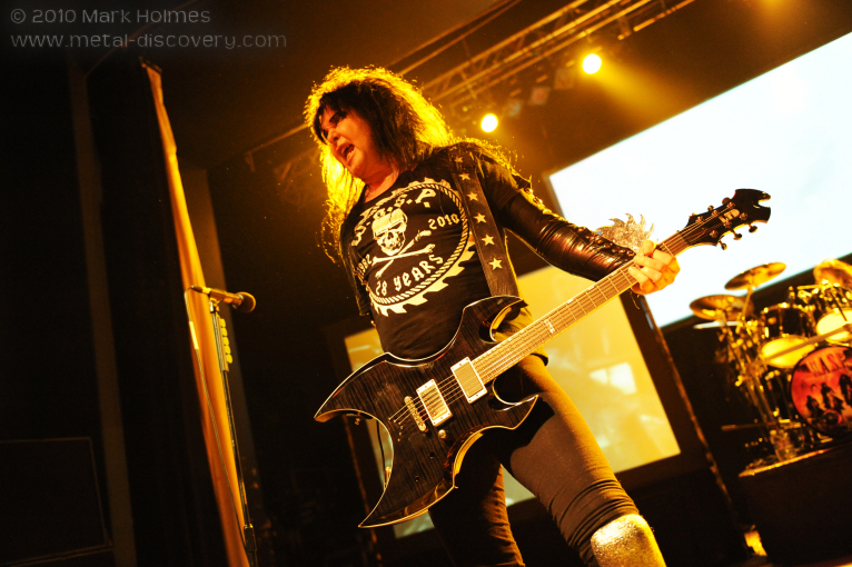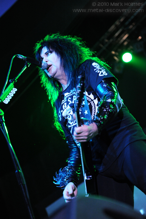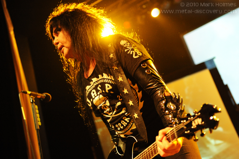 The anticipation for the once-controversial Californians is asphyxiating and fans cannot be any more excited. An intro tape comprised of a medley of the band’s favourites actually forces people to spontaneously combust. As W.A.S.P. take the stage, exploding into ‘On Your Knees’ from their debut self-titled, the ovation rattles around the venue’s walls. Fortunately, the sound is noticeably better for the headliners than it was for Shadowside. The wildness of the opener is accompanied by frontman Blackie Lawless attired in black spandex, bounding around impressively for his age, snarling his vocals with the nastiness they deserve. He may not be hacking up meat and tossing it into the audience, accessorizing himself with blood, but Lawless still demands all the attention fixated on him. The rest of the band crawl the stage with similar tenacity as they unleash W.A.S.P.’s violent ‘80s metal to the ravenous crowd. The four-piece seamlessly glide into their cover of The Who’s ‘The Real Me’, retaining the same vigour as the opener. As the show unfolds, projector screens at the back display videos of the songs being performed, where possible, or clips relating to the song. The setlist boasts W.A.S.P.’s fan favourites pumped with meat from last year’s ‘Babylon’: ‘Crazy’ and ‘Live to Die Another Day’. Although these newer cuts are devoured entirely by the audience, the classics are what the beer-tinged horde is anticipating the most. The venomous ‘L.O.V.E. Machine’ raises the rafters as the congregation belt out the chorus; the guitar intro of ‘Wild Child’ forces everyone into rapture and the emotively-charged ‘The Idol’ gauges an equally powerful response. But the alcohol has truly penetrated the brain and destroyed all inhibitions as closer ‘I Wanna Be Somebody’ coerces the crowd into rapidly leaping up and down, crooning along to the heavy metal classic. Only after eight songs do the Californians vacate the stage, before returning after the sound of chainsaws being revved up, signalling for the relentless ‘Chainsaw Charlie’, crisp and ferocious in its execution. The mood then turns sombre as ‘Heavens Hung in Black’ from the more recent ‘Dominator’ album, complete with images of socio-political worldwide decay. However, the night does not end on a glum note; after all, this is a W.A.S.P. show. The inebriation concludes with a fantastic rendition of the indulgent ‘Blind in Texas’ of course, summing up the attitude of the show over all. The show is an exciting one and is testament that W.A.S.P. do not need to quit anytime soon. However, the truncated length of the set is bitterly disappointing and, given how long their career spans, W.A.S.P. need to play significantly longer shows. Eleven songs is not enough.