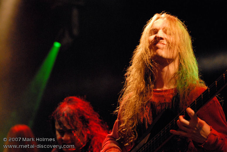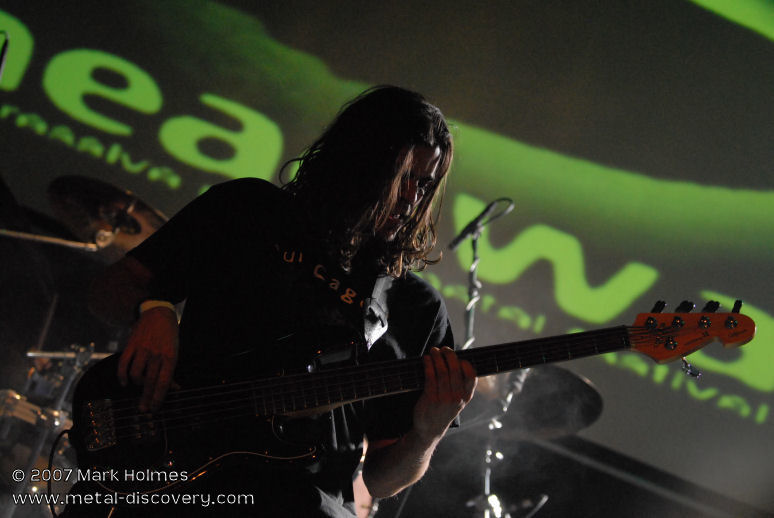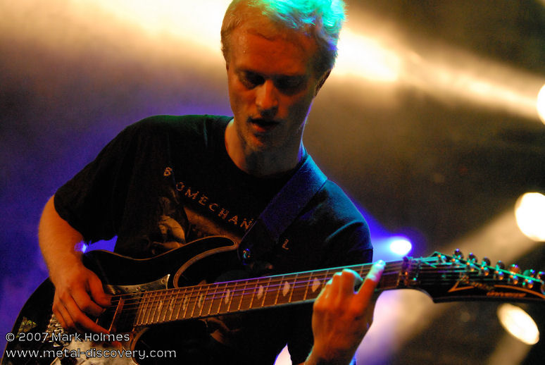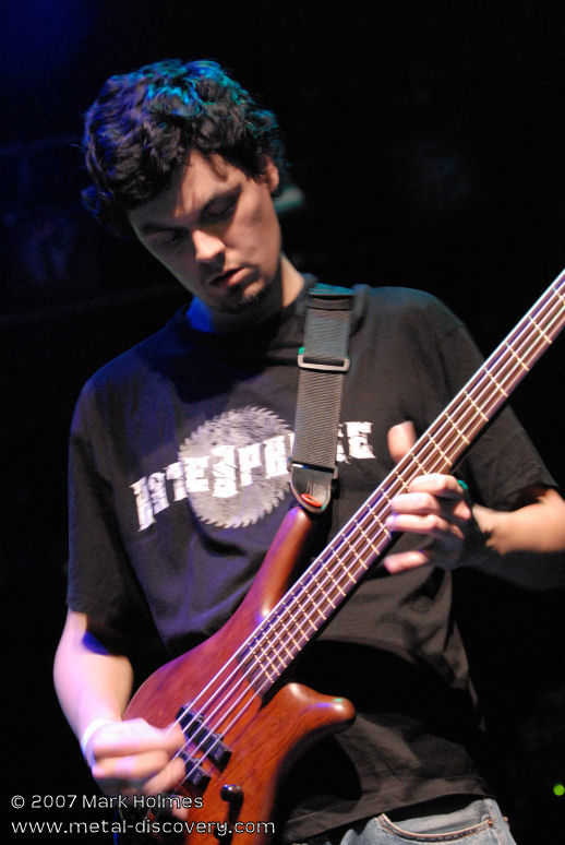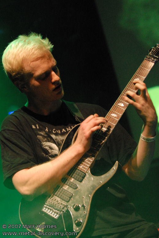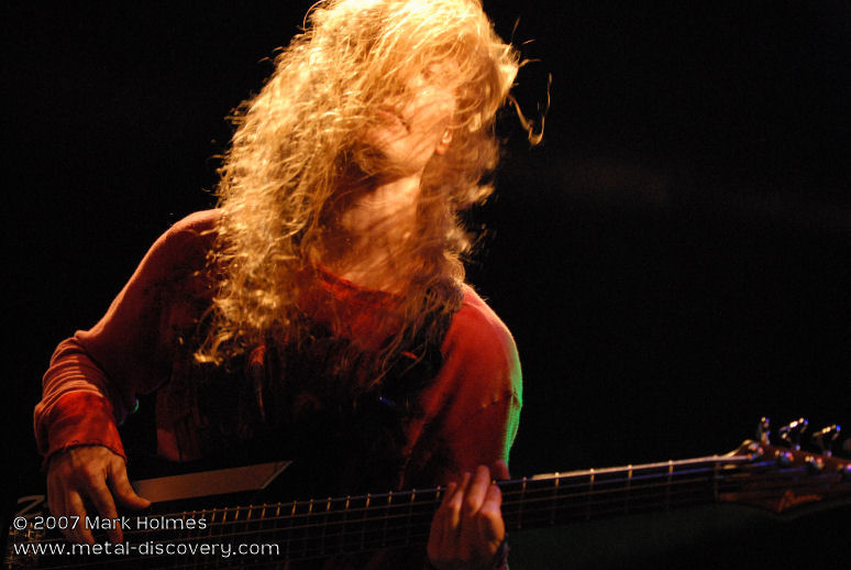 Bringing the first evening of Headway 2007 to a close are Friday headliners Zero Hour from the States. I admit to not being too familiar with their music prior to this evening, though have always heard positive feedback about their brand of technical prog metal. As they appear on stage and launch into the opening number I am blown away by the uncompromising and relentless wall of sound produced by these musicians. Guitarist Jasun Tipton and bassist Troy Tipton, who are twin brothers, are astoundingly technical players and pull off complicated riffs, leads and basslines with apparent ease. Most songs are loaded with mind-blowing complexities and raw heaviness, but sometimes infused with, and broken up by, slower, less intense jazz-inspired passages reminiscent of technical death metal pioneers Atheist. One of the things that sets Zero Hour apart from other bands playing this style of music is vocalist Chris Salinas who has a more traditional, high-pitched metal voice. It occasionally brings to mind Alan Tecchio of Watchtower who also sang similar style vocals over heavy, technical playing, although Zero Hour have a sound and style that is unique to them. My only minor criticism is that Salinas' singing doesn't always fit the more cacophonic sections of certain songs though, at other times, the dissonant music coupled with melodic vocals works very well. Overall, very impressive.