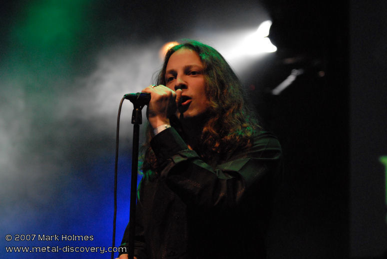 Second on stage are UK dark prog-metallers To-Mera. Having been impressed by a couple of their tracks I'd already heard previous to this evening, I was looking forward to seeing them live. Further, To-Mera features ex-Without Face frontwoman Julie Kiss on vocals, and being a big fan of the Hungarian band's impressive 'Astronomicon' album from a few years ago, was curious as to her latest musical venture. Also in To-Mera is the legendary Lee Barrett on bass who, apart from playing with previous bands Extreme Noise Terror, Disgust and Mussolini Headkick, was the founder/owner of Candlelight Records and responsible for 'discovering' and signing, amongst others, Emperor and Opeth. Playing for just over 40 minutes, To-Mera's set of largely original and varied compositions go down well with the Headway audience. With discernible influences including Pain of Salvation, Meshuggah and Evergrey, their music is also refreshingly innovative on its own terms. This is largely helped by guitarist Tom MacLean's inventive playing style with Petrucci-inspired technical leads, polyrhythmic palm-muted riffs, occasionally interposed with passages of clean jazz. With these jazz interludes To-Mera, at times, sound almost like an aurally euphonic and more accessible version of Ephel Duath (ironically another Barrett discovery during his time running Elitist Records as a sub-division Earache). Since leaving Without Face, Kiss has evolved into a more powerful singer, although her strong vocal performance is occasionally lost in the mix during some of the heavier passages. While I find it hard to fault To-Mera musically, they don't look entirely comfortable in their collective performance. MacClean, easily the most animated member of the band, comes across very relaxed and seems to enjoy every moment, although his bandmates convey a more serious attitude in their individual performances and don't interact well with each other on stage. Having said that, To-Mera deliver a musically captivating performance and are impressively tight. Over time and with further performances they will, I'm sure, evolve into a more polished live act, and have the potential to become a dominant force in the prog-metal scene.