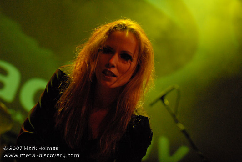 With their debut album only just released, Dial are perhaps best know for containing ex-Pain of Salvation bass player Kristoffer Gildenlow. The band state their diverse range of influences include Pink Floyd, Porcupine Tree, Anathema, Massive Attack, Tori Amos and Queen, so I was quite intrigued as to how they would sound. Initially, Gildenlow appears on stage by himself and plays pieces of music on various instruments including bass and electronic drum pads, which he loops to build into a coherent whole and this works as a great atmospheric tension building piece. Other members of Dial then join him on stage, and the band work their way through a 45 minute set of fairly original prog rock songs. Vocalist Liselotte Hegt, with her distinctive false eye lashes, doesn't have the world's greatest voice, though her occasionally dissonant tones and almost raw punk-like qualities fit the music perfectly. On some tracks, Dial remind me of Melanie Garside's Maple Bee project although beyond that, Gildenlow lends many of the songs his great vocals which are not too dissimilar from brother and Pain of Salvation frontman Daniel's. Throughout their set, band members occasionally swap instruments which keeps matters interesting, and Gildenlow communicates well with the audience through his laid-back stage persona. Early in the set, he shows off his multi-lingual skills by speaking Swedish, Dutch, then settling for English when he asks the P60 crowd if they want him to speak the latter and the general response is yes. Overall, very impressive.