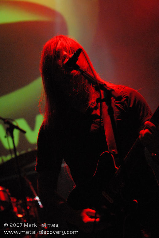 Dutch band Transmission0 open the second day of Headway 2007. Exceeding their allotted half hour slot by 10 or so minutes, no-one seems to complain as the experimental rock-metallers treat the Headway audience to a slickly performed set of atmospheric, absorbing music. Fusing captivating synth-led soundscapes with sporadic bursts of heavy guitar and pounding drums, watching/listening to Transmission0 is a mesmerising experience. Tension-building lengthy instrumental passages are interspersed with Michiel van der Avoird's passionately delivered vocals, and the band have a pristine sound through the PA. Transmission0's varied styles of rock and metal reminds me in places of Isis and Tool, and some guitar riffing also brings to mind Primordial. In short, Transmission0 are stunning.