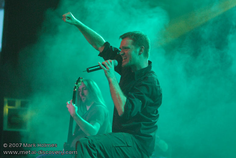 Sweden's Heed open up ProgPower UK II at around 1pm. Featuring former Lost Horizon members - vocalist Daniel Heiman and guitarist Fredrik Olsson - this afternoon marks their live debut in the UK. They were only booked around a month ago to replace Scar Symmetry who disappointingly cancelled in favour of a lengthy North American tour with The Haunted, Dark Tranquility and Into Eternity (the latter cancelled their planned headline set at Dutch festival Headway for the same reason). Playing both new material and songs from their debut album 'The Call' including 'Salvation', 'Enemy' and 'Last Drop of Blood', Heed deliver a musically solid and dynamically energetic performance as Heiman bounds around the stage encouraging a fairly animated audience to cheer and clap along. Olsson impresses with some virtuosic guitar leads while bassist Tommy Larsson adds depth to the songs with some powerful, clean backing vocals. It is slightly amusing when Heiman yells 'how you doing tonight' etc, when addressing the audience, but I guess he was lost in the moment, forgetting it to be early afternoon. Overall, Heed prove to be a perfect opening band with their infectious brand of Scandinavian speed-power metal well received by the PPUK audience.